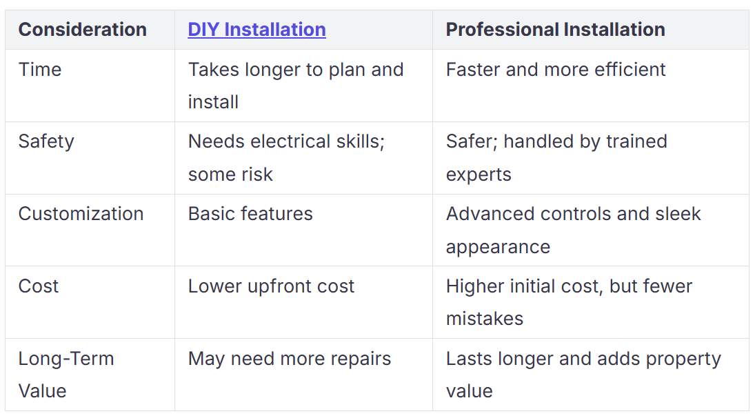 Získanie profesionála je drahšie, ale poskytne vám odbornú pomoc. Profesionáli používajú dobré materiály a starajú sa o bezpečnosť vašich svetiel. Môžu robiť ťažkú prácu a pridávať špeciálne funkcie.