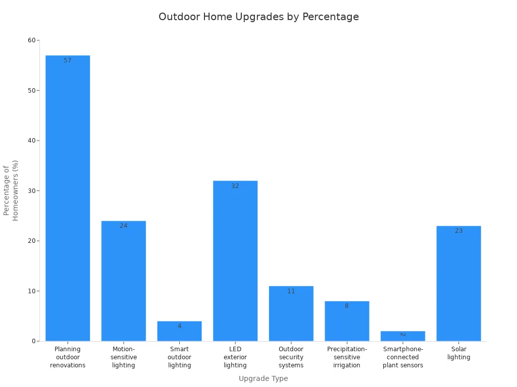 Inteligentná technológia uľahčuje používanie vonkajších LED svetiel. Svetlá môžete ovládať telefónom alebo hlasom. Mnoho systémov vám umožňuje nastaviť časy zapínania a vypínania svetiel. To pomáha šetriť energiu a udržuje váš domov bezpečnejší. Môžete tiež zmeniť, ako jasné alebo farebné sú svetlá.