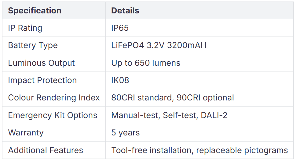 Produkty núdzového osvetlenia LED spotrebujú menej energie a vydržia oveľa dlhšie. V prípade núdze poskytujú jasné svetlo. Tieto produkty pomáhajú budovám dodržiavať bezpečnostné pravidlá a zákony o núdzovom osvetlení.