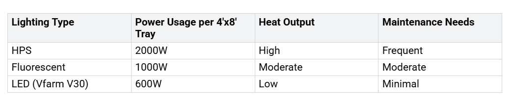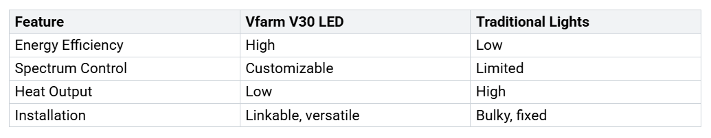 Pred začatím aprojekt vertikálneho poľnohospodárstva. Vysoká spotreba energie a trvalá závislosť na elektrinemôže zvýšiť prevádzkové náklady. Počiatočná investícia do vybavenia vrátane pestovateľských svetiel a klimatizácie je vyššia ako pri tradičných systémoch. Možno budete potrebovať špecializované znalosti v oblastiach, ako je elektrina, inštalatérstvo a veda o rastlinách, aby ste mohli prevádzkovať a udržiavať svoje nastavenie. Väčšina vertikálnych fariem sa zameriava na listovú zeleninu, bylinky a mikrozeleniny, pretože obilniny a mnohé druhy ovocia sú menej vhodné. Napriek týmto výzvam ponúkajú vysokokvalitné LED systémy, ako je Vfarm V30dlhodobé úspory prostredníctvom energetickej účinnosti, zníženého tepelného výkonu a nižšej údržbypotreby. Ich všestranný, prepojiteľný dizajn z nich robí silnú voľbu pre fanúšikov aj komerčných pestovateľov.